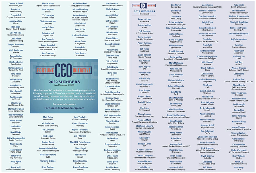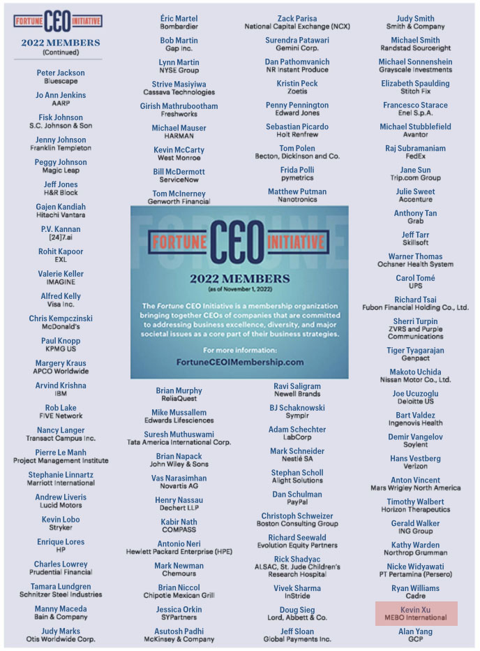 此次位列財(cái)富CEO倡議2022年名單還包括米其林、梅西百貨、塔塔、聯(lián)邦快遞、羅素、輝瑞、強(qiáng)生、諾華等500強(qiáng)企業(yè)CEO。
