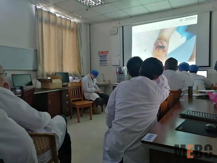 1月15日,受洛陽(yáng)伊川縣人民醫(yī)院內(nèi)分泌科楊主任邀請(qǐng),洛陽(yáng)十院創(chuàng)面修復(fù)外科張敏楠主任至科室對(duì)一例糖尿病壞疽病人進(jìn)行會(huì)診,張主任親自換藥,并講解再生醫(yī)療技術(shù)與外科清創(chuàng)技術(shù)相結(jié)合治療潰瘍創(chuàng)面,并與科室醫(yī)生溝通慢性創(chuàng)面的發(fā)展趨勢(shì),大大提高科室醫(yī)生對(duì)糖足病人保肢的信心。