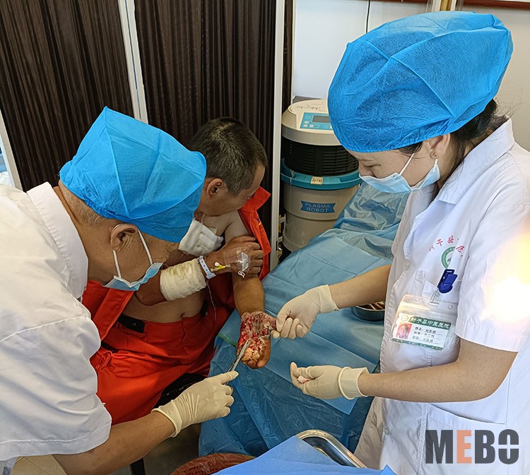 8月18日,應(yīng)永新縣中醫(yī)院外科賀主任、左醫(yī)生和羅醫(yī)生邀請,北京榮祥再生醫(yī)學(xué)研究所副所長、《中國燒傷創(chuàng)瘍雜志》編委金黨軍,前往該院進行了學(xué)術(shù)交流和會診,并親自給一例壓瘡患者和多年足部潰瘍患者進行了清創(chuàng)換藥,示范再生醫(yī)療技術(shù)的臨床規(guī)范應(yīng)用,贏得了在場醫(yī)護人員和患者家屬的高度認(rèn)可。