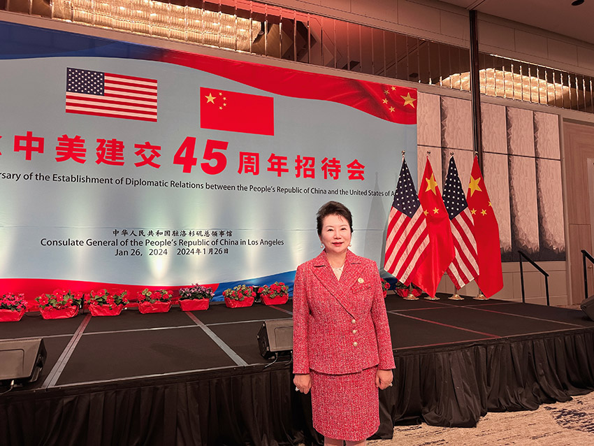當(dāng)?shù)貢r(shí)間2024年1月26日下午,由中華人民共和國駐洛杉磯總領(lǐng)事館舉辦的“紀(jì)念中美建交45周年招待會”在洛杉磯舉行。美寶集團(tuán)董事局李俐受駐洛杉磯總領(lǐng)事郭少春及夫人王薇之邀出席。洛杉磯州、郡、市政要和各界友好人士約200人出席,共同回顧中美建交初心,展望中美關(guān)系未來;并暢談交流、共敘友誼,歡度中國春節(jié)。