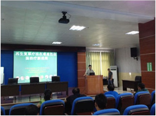 2012年8月21日,應(yīng)富寧縣人民醫(yī)院的邀請,中國中西醫(yī)結(jié)合學(xué)會燒傷專業(yè)委員會常委兼秘書、《中國燒傷創(chuàng)瘍雜志》副總編輯、北京美寶燒傷創(chuàng)瘍研究所副所長、第二臨床研究部主任王洪生研究員來到該院,進(jìn)行再生醫(yī)療技術(shù)講座并進(jìn)行學(xué)術(shù)和技術(shù)上的交流和探討。該院領(lǐng)導(dǎo)對此次難得的學(xué)術(shù)活動機會相當(dāng)重視, 醫(yī)院多科室醫(yī)護(hù)人員參加了此次會議。會中王主任就“再生復(fù)原療法在深度燒傷及難愈性創(chuàng)面治療新進(jìn)展”作專題學(xué)術(shù)講座,王主任結(jié)合大量真實的臨床病例圖片和圖像,把再生復(fù)原療法在深度燒傷及難愈性創(chuàng)瘍創(chuàng)面治療上的一種新方法,對不同深度的燒傷創(chuàng)面及各類難愈創(chuàng)傷、潰瘍創(chuàng)面的規(guī)范化處理方法與技巧、注意事項等進(jìn)行了細(xì)致地講解。
