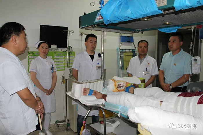 364醫(yī)院是襄陽市唯一一家可幫助燒燙傷患者接收“中國紅十字基金會徐榮祥再生生命公益基金”愛心捐助的醫(yī)療機(jī)構(gòu),黃彥勇一行的到來更是為任海鵬帶來了該項基金最高額度3萬元的救助金,這對任海鵬本人和他的家庭來說,無疑是雪中送炭。