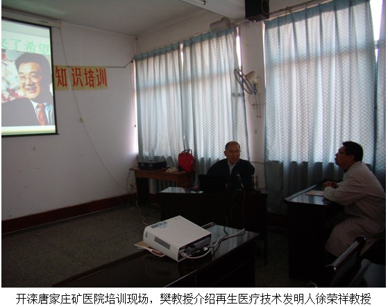 2012年11月1日下午,樊教授應(yīng)邀來到唐山市遷西縣中醫(yī)院進(jìn)行再生醫(yī)療技術(shù)的院內(nèi)培訓(xùn),50多該院醫(yī)護(hù)人員接受了培訓(xùn);2012年11月6日下午,樊教授應(yīng)邀來到了唐山市古冶區(qū)開灤唐家莊礦醫(yī)院進(jìn)行再生醫(yī)療技術(shù)的培訓(xùn),開灤唐家莊礦醫(yī)院是開灤醫(yī)療集團(tuán)下屬的一個(gè)二甲醫(yī)院,參加培訓(xùn)的醫(yī)護(hù)人員有70人次;2012年11月7日下午,樊教授應(yīng)邀來到豐潤區(qū)人民醫(yī)院進(jìn)行再生醫(yī)療技術(shù)的院內(nèi)培訓(xùn),豐潤區(qū)人民醫(yī)院是當(dāng)?shù)匾?guī)模最大,最具影響力的二甲醫(yī)院,參加培訓(xùn)的醫(yī)護(hù)人員有70人次;2012年11月8日下午,樊教授應(yīng)邀來到秦皇島市骨科醫(yī)院開展再生醫(yī)療技術(shù)的院內(nèi)培訓(xùn),秦皇島市骨科醫(yī)院是秦皇島市唯一一家市級(jí)??漆t(yī)院,對(duì)骨科,骨傷,外傷的治療方面有相當(dāng)?shù)穆曌u(yù)。參加培訓(xùn)的醫(yī)護(hù)人員有40人次。