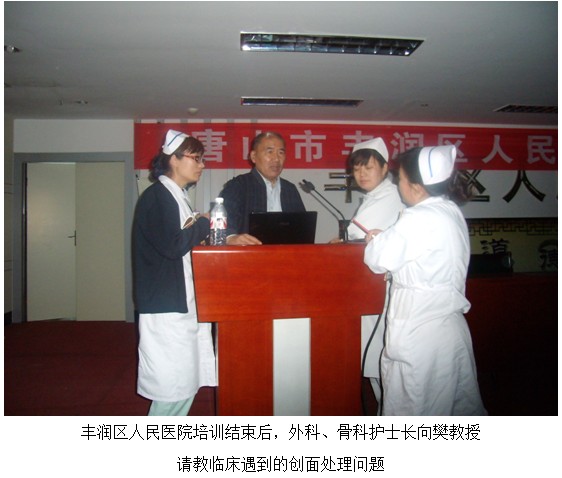 中國中西醫(yī)結(jié)合學(xué)會(huì)燒傷專業(yè)委員會(huì)常委、北京燒傷創(chuàng)瘍研究所副所長、《中國燒傷創(chuàng)瘍雜志》常委編委樊兆宗教授,應(yīng)多家醫(yī)院的邀請(qǐng)來到唐山、秦皇島地區(qū)進(jìn)行“中西醫(yī)結(jié)合創(chuàng)面治療新進(jìn)展”的繼續(xù)教育培訓(xùn)工作。