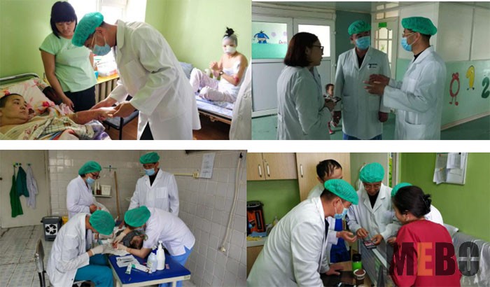 培訓(xùn)結(jié)束之后,陳永翀主任受邀前往門診換藥處對(duì)近期因森林火災(zāi)燒傷的消防員的清創(chuàng)和包扎進(jìn)行指導(dǎo)。最后,創(chuàng)傷科主任再次向美寶國(guó)際的人道主義精神表示欽佩,并向一如既往支持再生醫(yī)學(xué)在蒙古國(guó)落地生根的中蒙專家們表達(dá)了感謝,并呼吁共同為后續(xù)再生醫(yī)學(xué)培訓(xùn)班的開展盡最大的努力。