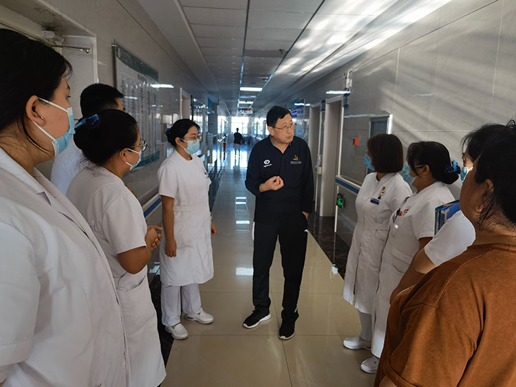 9月23日,《中國燒傷創(chuàng)瘍雜志》常務編委、燒傷創(chuàng)瘍再生醫(yī)療技術臨床專家趙瑞慶來到云岡區(qū)再生醫(yī)療基地醫(yī)院外科病區(qū),進行一期創(chuàng)面修復教學查房,針對21例慢創(chuàng)住院患者檢視指導。在討論環(huán)節(jié)重點對9例患者(糖尿病足4例,壓瘡2例,燒傷1例,截肢殘端創(chuàng)面1例,足背皮膚壞死創(chuàng)面l例)制定了具體詳細的治療措施,最后趙教授強調(diào)指出,在今后的醫(yī)療工作中要發(fā)揮好基地醫(yī)院的引領輔射作用,為當?shù)鼐用窀玫胤铡?