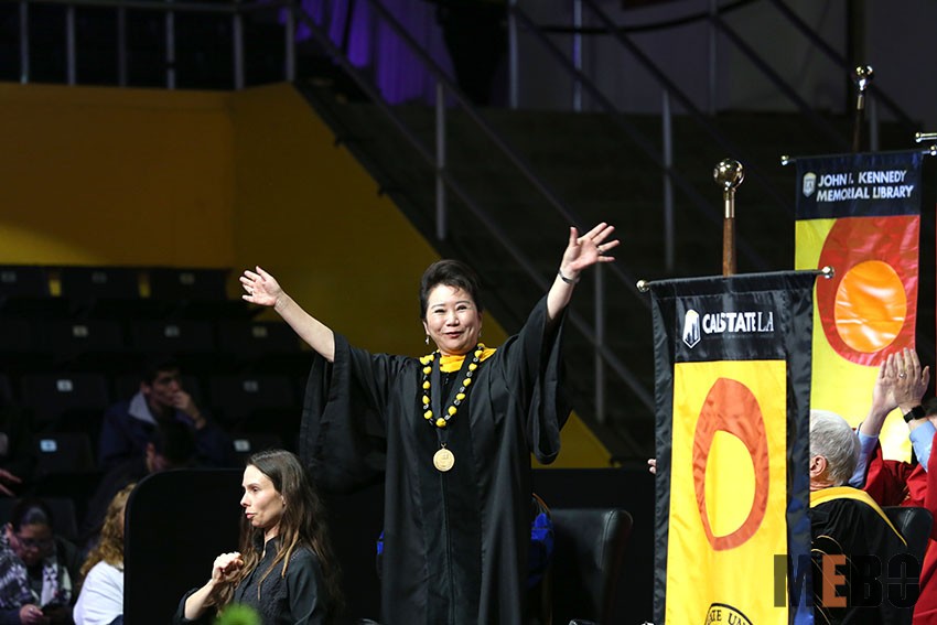 在洛杉磯明媚的5月,在沸騰的洛杉磯州大,在熱烈的入場進行曲中,迎來了第四屆徐榮祥健康與公眾服務(wù)學(xué)院(簡稱徐榮祥大學(xué))畢業(yè)典禮。美寶集團董事局、徐榮祥基金會主席李俐以校董身份第四次出席了畢業(yè)典禮,美寶集團多名員工代表在現(xiàn)場共同感受了這一榮耀時刻;洛杉磯州大校長William Covino,徐榮祥健康與公眾服務(wù)學(xué)院院長Ronald Vogel、副院長Evaon Wong-Kim等出席此次盛典并致辭。