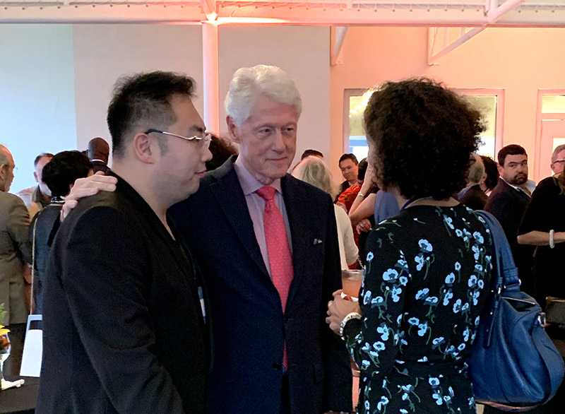 在貴賓招待會(huì)上徐鵬主席與克林頓總統(tǒng)就克林頓基金會(huì)的全球倡議項(xiàng)目及美寶倡議的最新?tīng)顩r進(jìn)行了深度交流,對(duì)于中國(guó)境內(nèi)年初爆發(fā)的新冠病毒疫情也交流了意見(jiàn)。徐鵬表示美寶集團(tuán)針對(duì)新冠疫情進(jìn)行了總體部署,除了捐款捐物外,也從國(guó)際平臺(tái)宣傳像NBA賽場(chǎng)、全明星賽場(chǎng)和時(shí)代廣場(chǎng)廣告牌等方面聲援武漢和中國(guó)的抗疫工作;從海外籌集防疫物資緊急馳援疫情重災(zāi)區(qū);以及建立官方支持的對(duì)接平臺(tái)加州抗病毒聯(lián)盟(California Fight Against Coronavirus,CFAC)??肆诸D總統(tǒng)表示新冠病毒疫情不是中國(guó)一個(gè)國(guó)家的事情,也不是一個(gè)短期的事件,這會(huì)是一個(gè)全球性事件,中國(guó)之后會(huì)在其他國(guó)家傳播,我們需要一個(gè)長(zhǎng)期的應(yīng)對(duì)策略,比如一個(gè)五年的計(jì)劃,比如在新加坡這樣國(guó)際性的地方建立一個(gè)全球防疫物資調(diào)撥中心,可以隨時(shí)統(tǒng)籌全球防疫物資,及時(shí)援助發(fā)生疫情的地區(qū)。徐鵬主席提出芝加哥大學(xué)徐鵬智庫(kù)開(kāi)始了一個(gè)對(duì)應(yīng)疫情的大數(shù)據(jù)項(xiàng)目”測(cè)量世界(Measuring The World)”, 通過(guò)大數(shù)據(jù)計(jì)算產(chǎn)生新冠病毒COVID-19 全球各地爆發(fā)的風(fēng)險(xiǎn)預(yù)測(cè)分布圖,幫助各地提前防備。