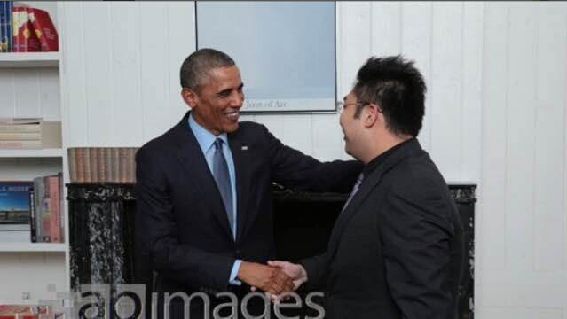 圖是白宮剛發(fā)布的奧巴馬總統(tǒng)與徐鵬見面的照片