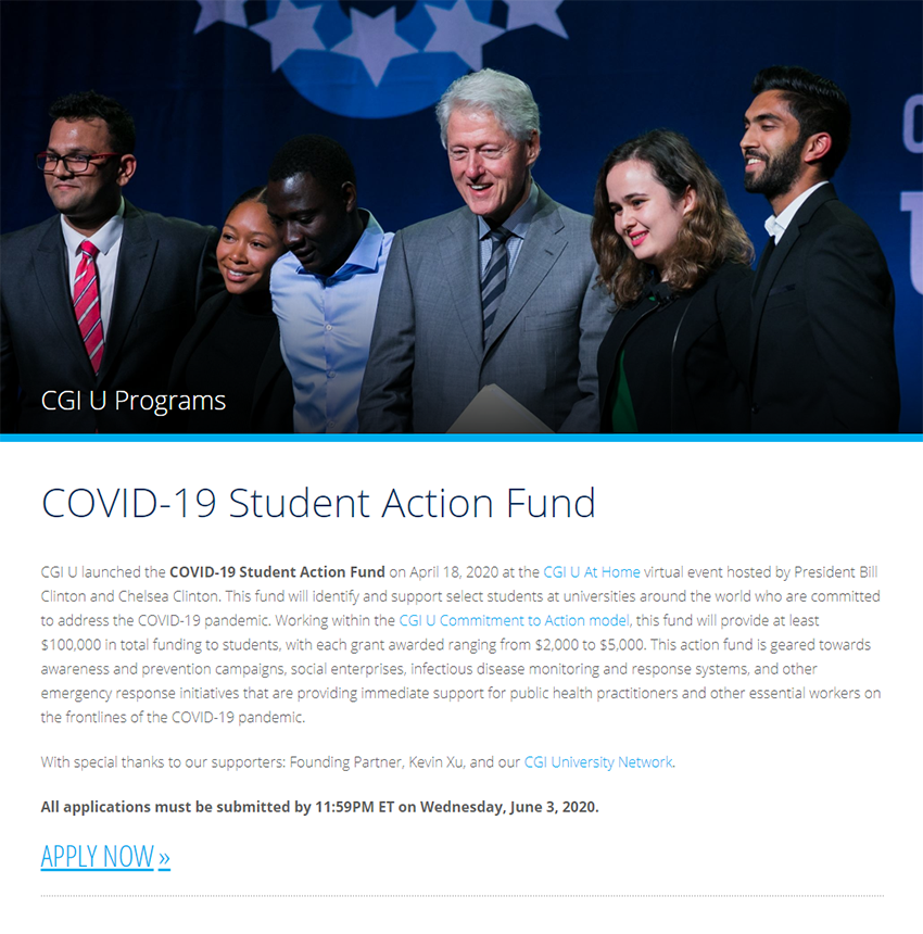 “新冠病毒學(xué)生行動(dòng)基金”申請(qǐng)已啟動(dòng)
