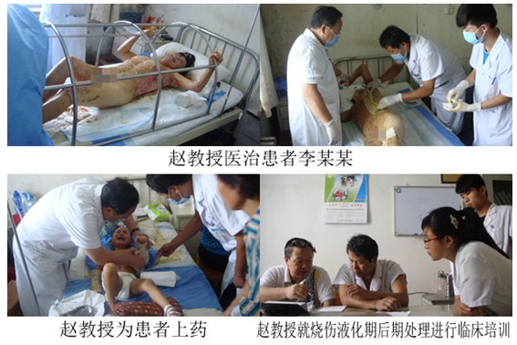 北京燒傷創(chuàng)瘍研究所趙瑞慶教授第一時(shí)間趕到了該醫(yī)院,在院領(lǐng)導(dǎo)的協(xié)調(diào)下,積極參與了搶救工作。截止到8月20日,使用再生復(fù)原技術(shù)治療兩例大面積燒傷病人,安全度過(guò)了休克期、感染期,平穩(wěn)過(guò)渡到創(chuàng)面修復(fù)階段。趙瑞慶教授利用星期天早會(huì)間隙時(shí)間,就如何正確認(rèn)識(shí)創(chuàng)面液化物,用創(chuàng)瘍貼保護(hù)創(chuàng)面軟薄膜、如何減少使用抗生素用量進(jìn)行了專(zhuān)題培訓(xùn)。趙教授在菏澤創(chuàng)傷醫(yī)院搶救病人期間和該院鄭連榮、楊鳳民院長(zhǎng)就北京燒傷創(chuàng)瘍研究所與菏澤創(chuàng)傷醫(yī)院持久長(zhǎng)期技術(shù)合作達(dá)成了一致意見(jiàn)。