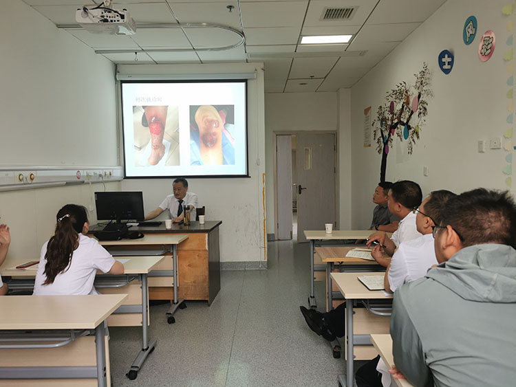 6月19日,應(yīng)河北北方學(xué)院附屬第二醫(yī)院邀請,《中國燒傷創(chuàng)瘍雜志》常務(wù)編委、燒傷創(chuàng)瘍再生醫(yī)療技術(shù)臨床專家趙瑞慶,在該院會診了四例糖尿病足潰瘍患者,會診后在醫(yī)辦室做了會診小結(jié),分別給出指導(dǎo)意見,事后又進(jìn)行了再生技術(shù)治療糖尿病足潰瘍的科室培訓(xùn),耐心解答了大家提出的臨床問題,受到大家一致認(rèn)可。