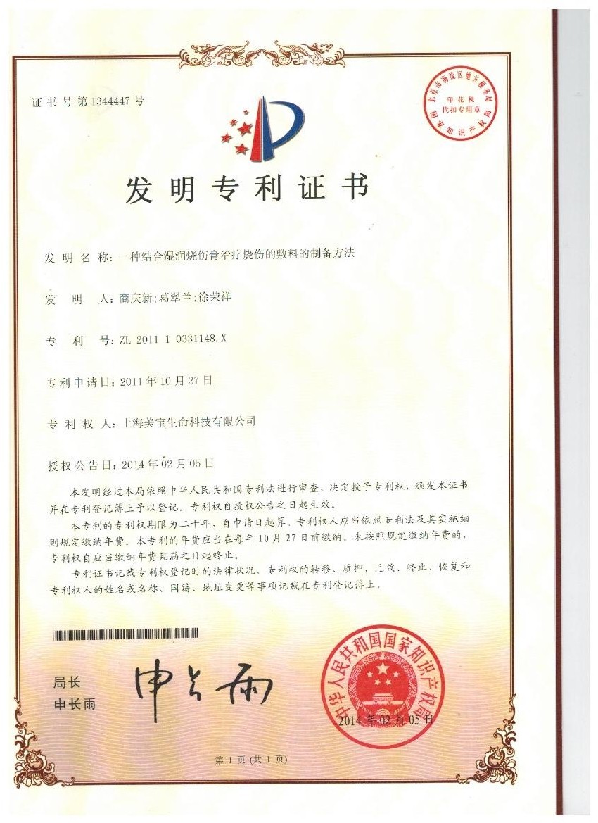 | ZL201110331148.x | 一種結(jié)合濕潤燒傷膏治療燒傷的敷料的制備方法 | 查看 |