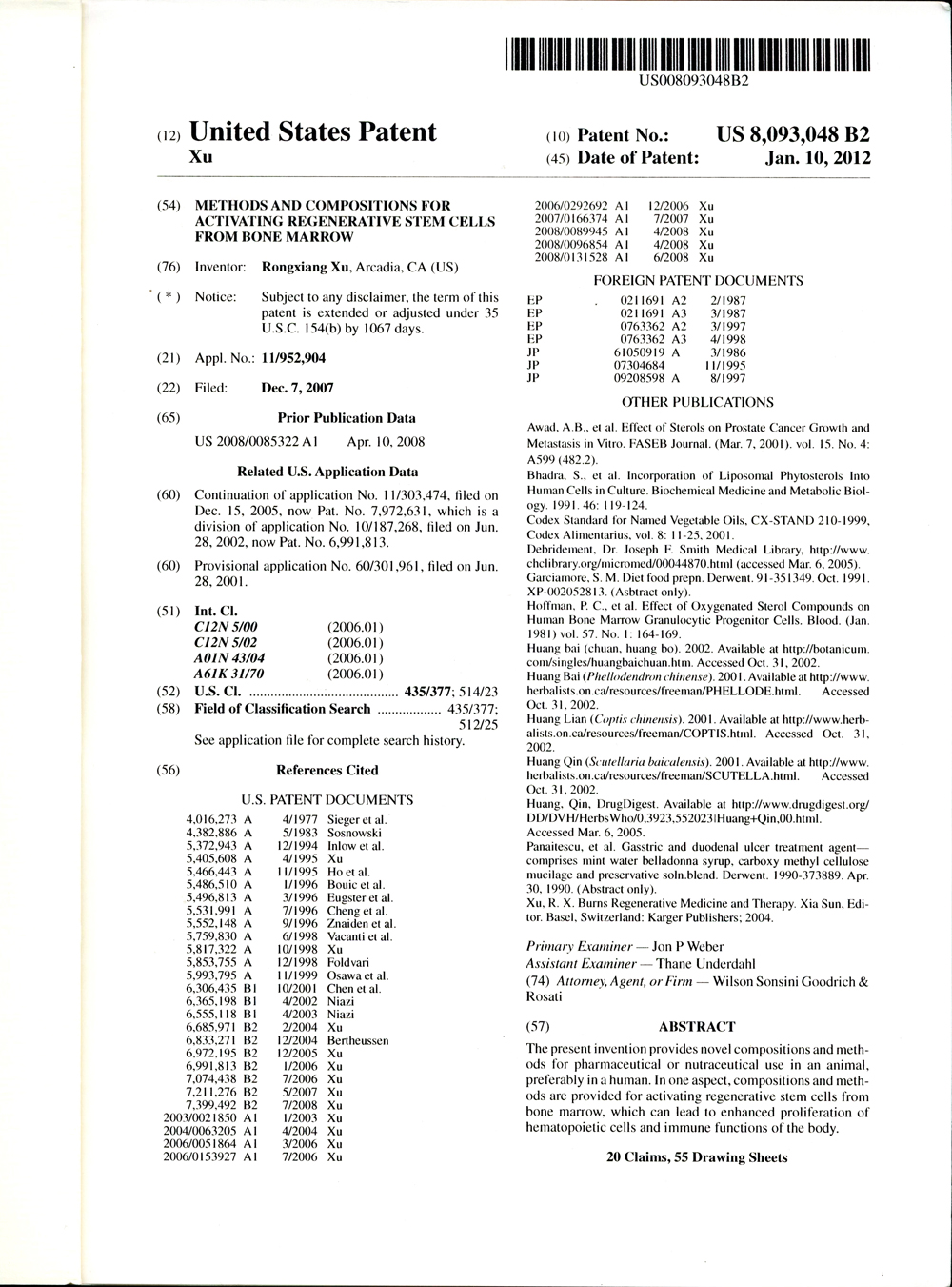 | 8093048 B2 | 激活骨髓組織中再生干細(xì)胞的方法和再生物質(zhì)組合 | 查看 |