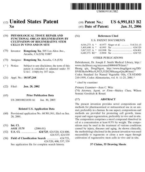 | 6972195 B2 | 在體外培養(yǎng)潛能再生細(xì)胞和有功能的組織器官的成分和方法 | 查看 |